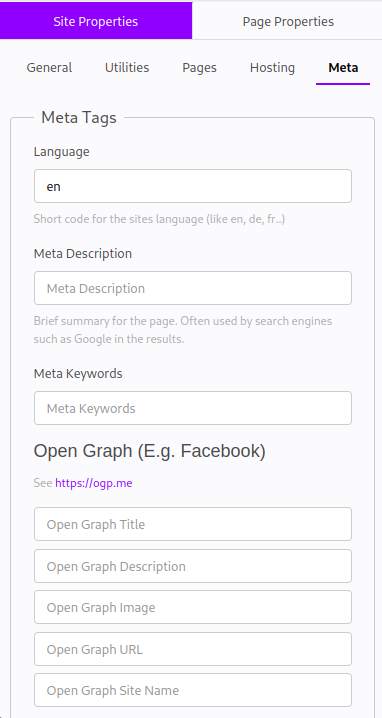 On the right side (You can change the position in the settings) you find the properties of the currently open element. As you currently haven't selected any elements you find the site and page properties on it.